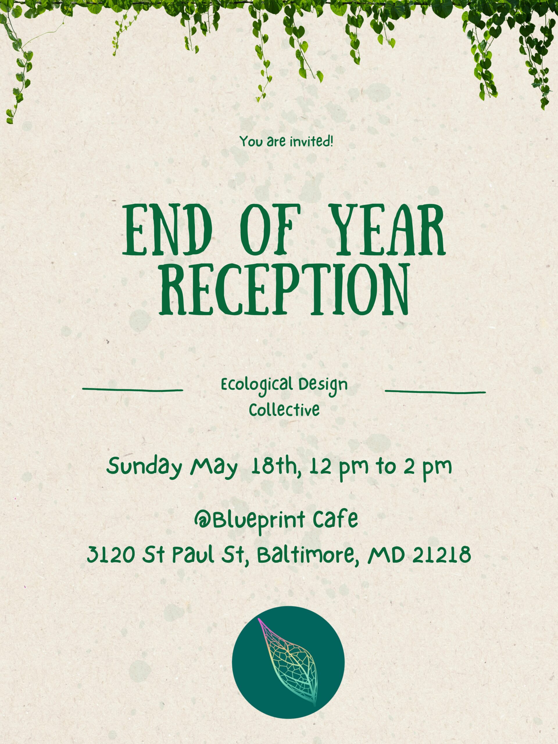 We’ll gather on Sunday, May 18, from 12:00 to 2:00 PM at Blueprint Cafe, 3120 St Paul St, Baltimore, MD 21218. Lunch will be provided.