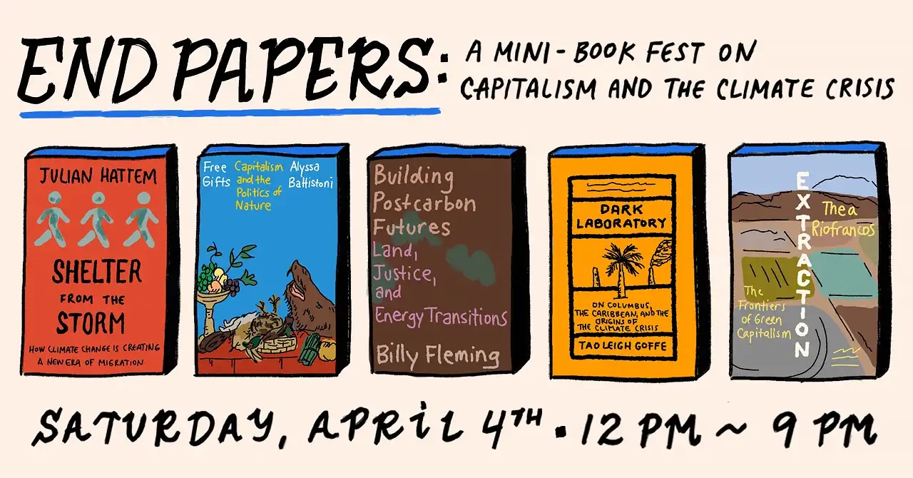 A one-day festival of books on capitalism and the climate crisis, featuring Thea Riofrancos, Tao Leigh Goffe, Alyssa Battistoni, Billy Fleming, Julian Hattem and more! Plus a radical resource fair with local climate organizers!