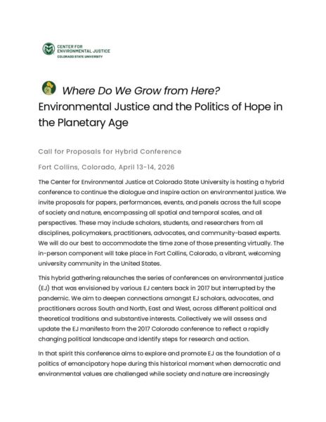 Home Forums Opportunities EJ Conference at Colorado State, April 13-14, 2026: Call for Papers/Panels